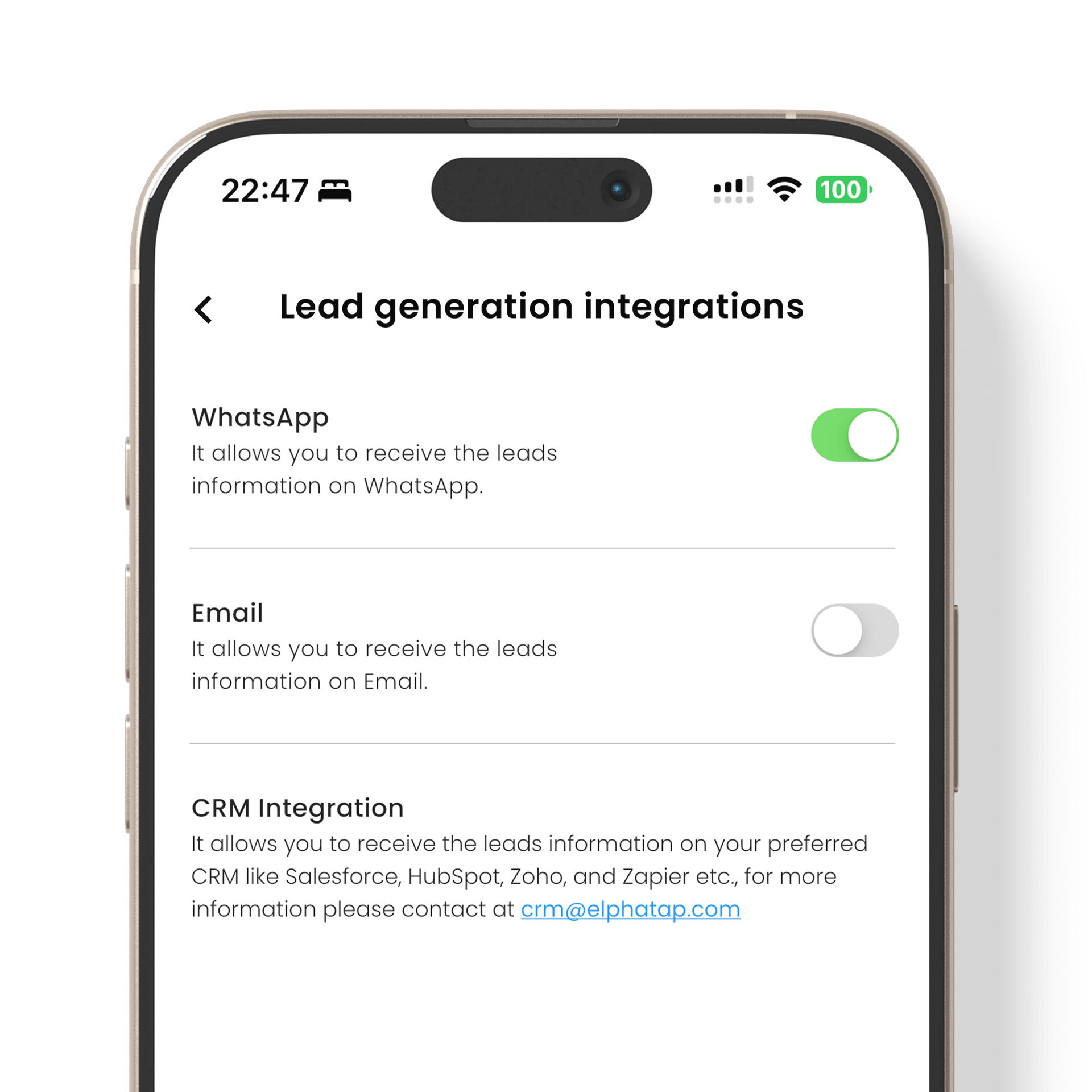 يزامن جهات الاتصال والعملاء المحتملين والمتابعات مباشرة مع واتساب والبريد الإلكتروني. حافظ على التوافق التام مع أهداف المبيعات الخاصة بك وسهل سير عملك.