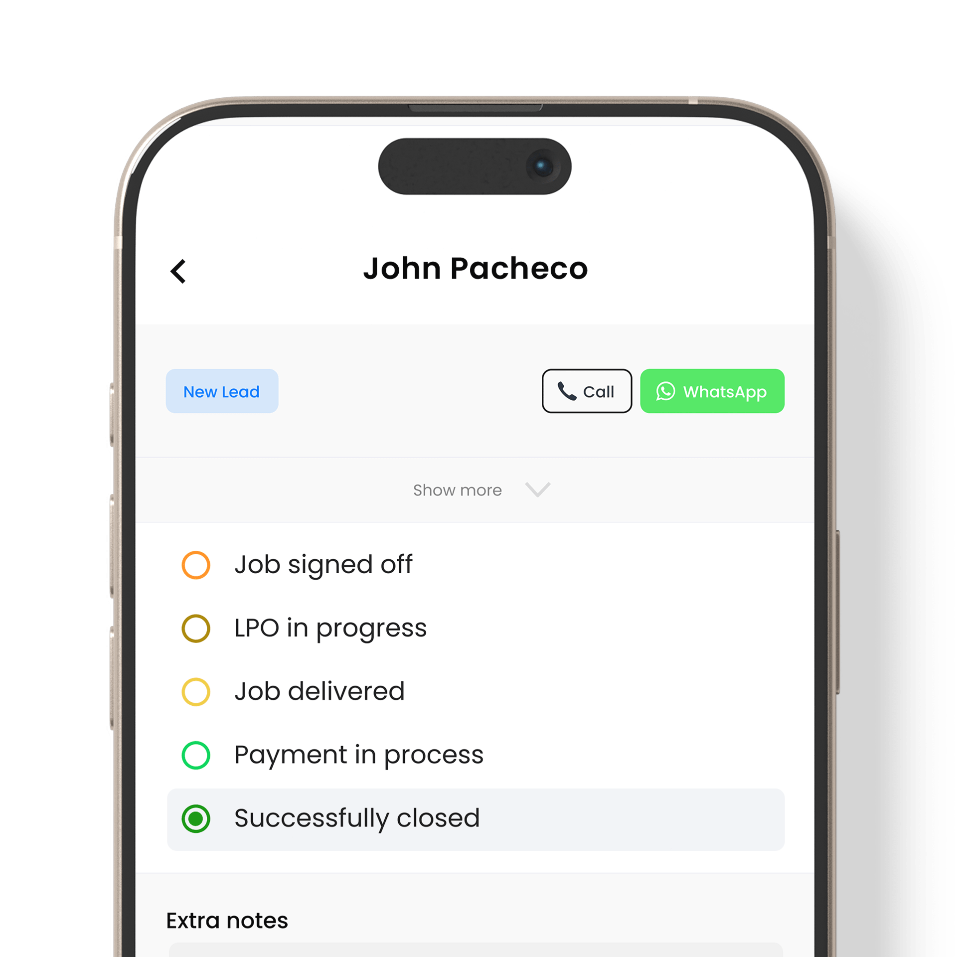نظم، تتبع، واعتنِ بعملائك المحتملين—وعملاء فريقك جميعًا في مكان واحد. قم بتبسيط المتابعات، وابقَ على اطلاع بكل فرصة، وأغلق الصفقات بسرعة أكبر.
